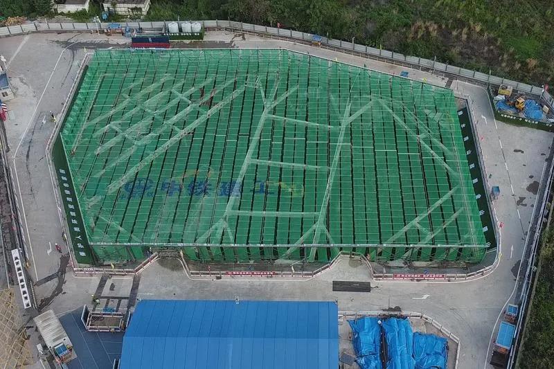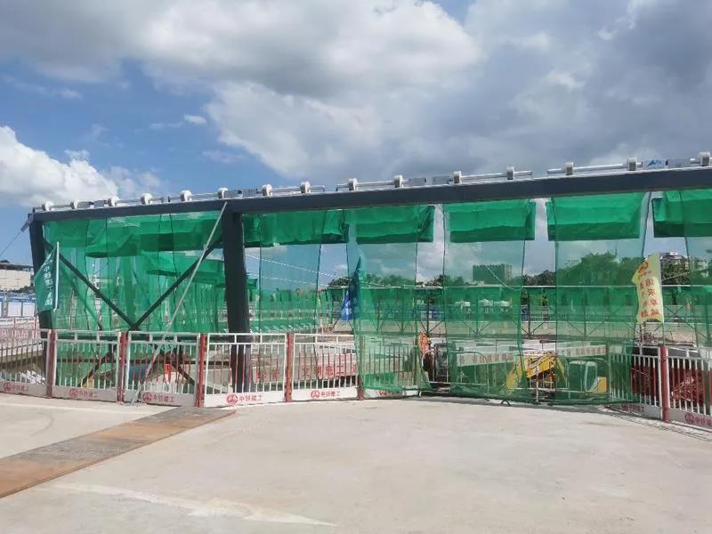 赤沙指揮中心項目施工方中鐵建工技術(shù)人員介紹,創(chuàng)新的綠色巨幕防塵系統(tǒng)和矩陣式防塵噴淋系統(tǒng)都是亮點。從高空俯瞰,整個工地基坑被綠色巨幕包裹,綠色防塵巨幕采用單元式布置,約6米寬作為一個單元,在基坑上方自動開合,在施工期間使得基坑作業(yè)現(xiàn)場隨時成為一個封閉式的作業(yè)空間,有效防止揚塵對外部環(huán)境造成污染。矩陣式揚塵噴淋系統(tǒng)能夠?qū)崿F(xiàn)整個基坑噴淋覆蓋,加上防塵霧炮機開啟后,整個建筑工地立即水霧彌漫,高效實現(xiàn)土方開挖施工作業(yè)過程的降塵。
