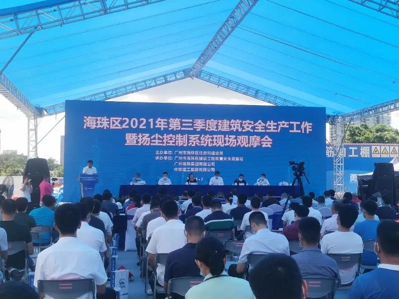 7月8日,廣州市海珠區(qū)2021年第三季度建筑安全生產(chǎn)工作暨揚塵控制系統(tǒng)現(xiàn)場觀摩會在赤沙車輛段地鐵治安監(jiān)控通訊指揮中心遷建項目(以下簡稱“指揮中心項目”)工地現(xiàn)場舉行。海珠區(qū)住建局將在全區(qū)推廣這一防塵降噪好做法。