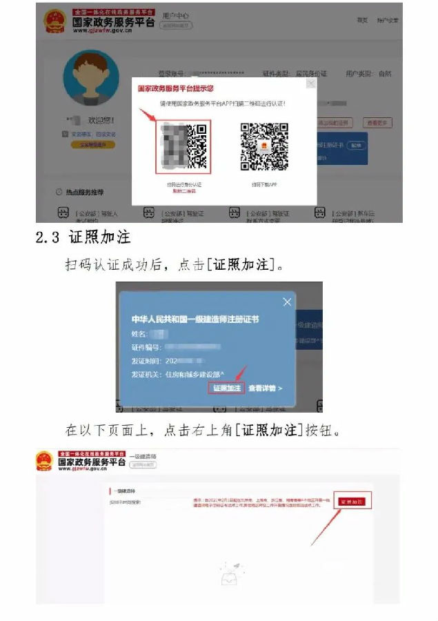 2.自2021年10月15日起,全國范圍內準予一級建造師初始注冊、增項注冊、重新注冊、延續注冊的,不再發放紙質注冊證書或加貼防偽貼;聘用單位基本信息修改的,不再加貼防偽貼;因紙質注冊證書遺失、污損或個人信息修改等需重新發放注冊證書的,不再補發或更換紙質注冊證書。