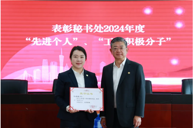 會議首先對秘書處各部門2024年考核指標完成情況進行了介紹。并對秘書處2024年度“先進個人”“工作積極分子”和受上級部門表彰的個人進行了表彰。