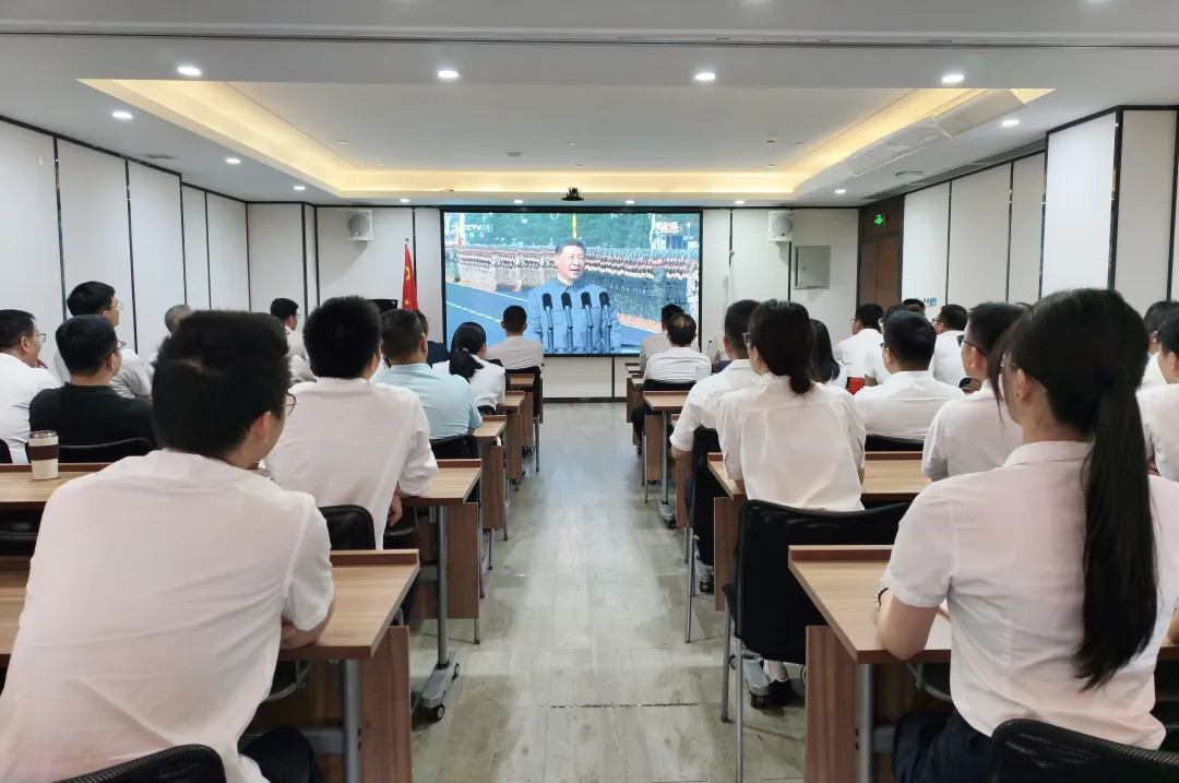 廣州市建筑業(yè)聯(lián)合會(huì)組織秘書處全體員工集體觀看這場(chǎng)盛大的慶典,激勵(lì)員工將民族自豪感轉(zhuǎn)化為推動(dòng)行業(yè)高質(zhì)量發(fā)展的實(shí)干動(dòng)力。