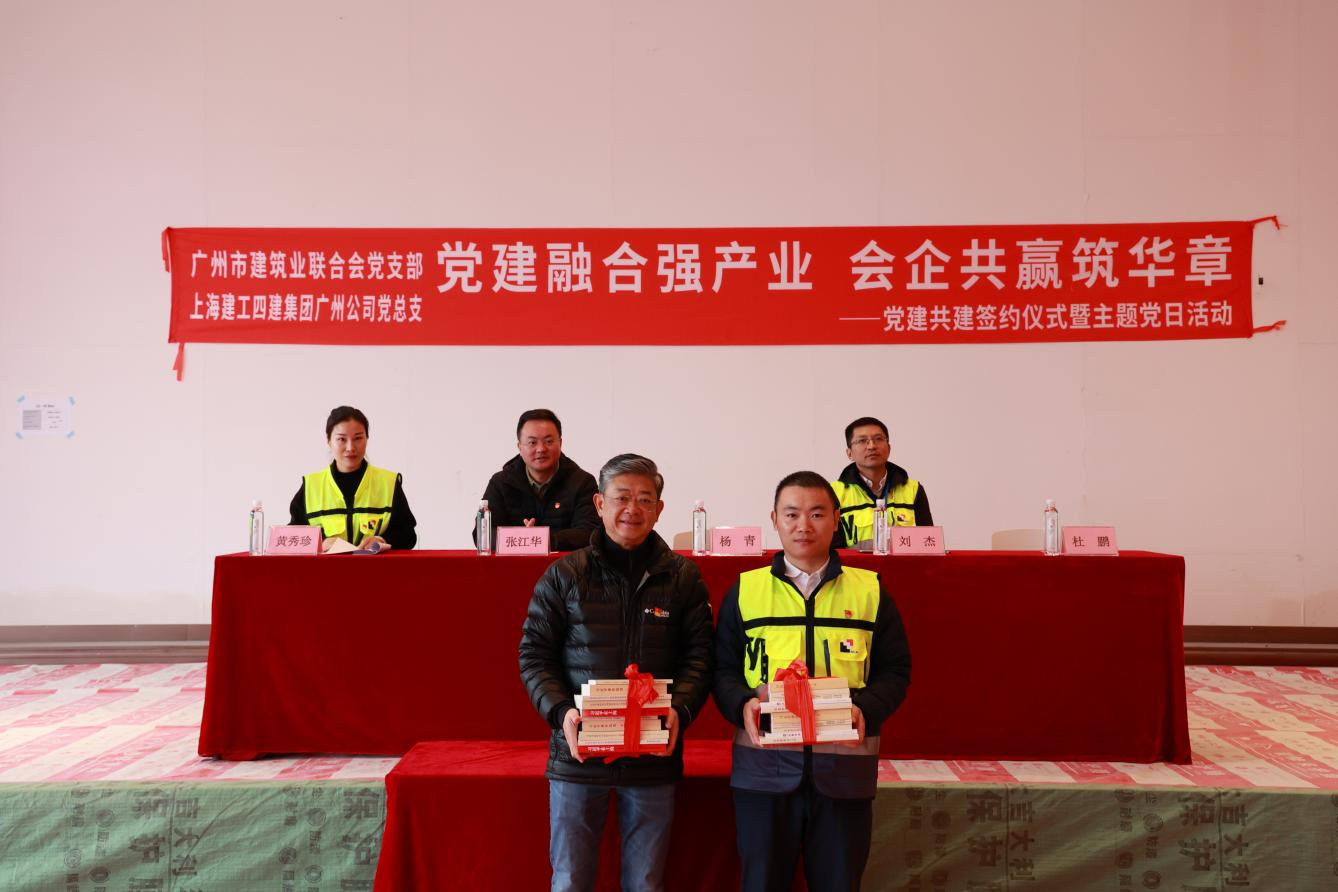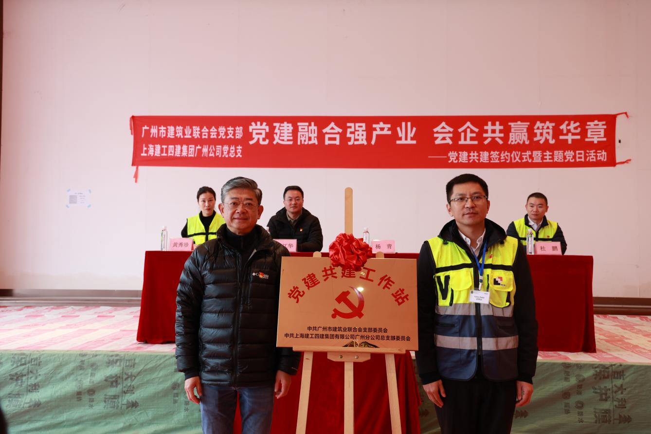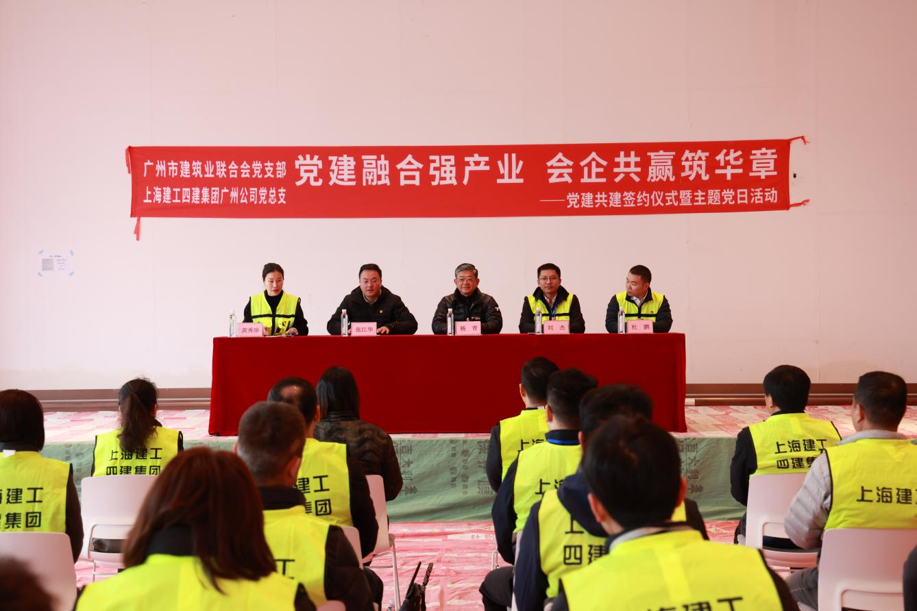 廣州市建筑業聯合會黨支部書記、會長楊青,副會長兼秘書長張江華,副秘書長邵丹等聯合會領導及黨員代表;上海建工四建集團副總裁、華南區域負責人劉杰,上海建工四建集團廣州分公司黨總支書記、副總經理杜鵬,廣州分公司總經理張利鋒等企業相關負責人及項目代表共同出席活動。