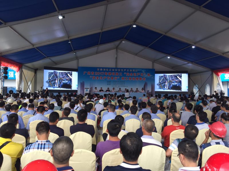 6月20日下午,以“全面落實企業安全生產主體責任”為主題的廣州市2017年度建筑施工“安全生產月”和“安全生產萬里行”觀摩活動,在廣州市申報創安全文明施工樣板工地項目的中建三局第一建設工程有限責任公司組織的開發區“魚珠國際木材市場商業改造單元-北地塊(AP0518004)項目A2號樓”工地、中天建設集團有限公司組織的天河區“商業、辦公樓工程(自編萬科云二期A2棟)”工地、中國建筑第二工程局有限公司組織的花都區“東鏡新城項目七期住宅樓工程(自編號七期7-1—7-6棟)及地下室工程”工地同時啟動。