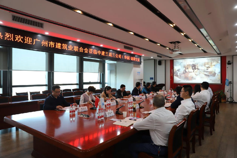 11月29日下午,我會執行會長崔浩江、秘書長常桂枝等一行7人前往中建三局三公司(華南)交流調研,三公司副總經理兼華南公司黨委書記、總經理齊從月,華南公司黨委副書記、紀委書記、工會主席春水,副總經理王智慧、馮磊、葉弘菁,安全總監徐威,質量總監羅春華以及相關部門負責人出席交流會。