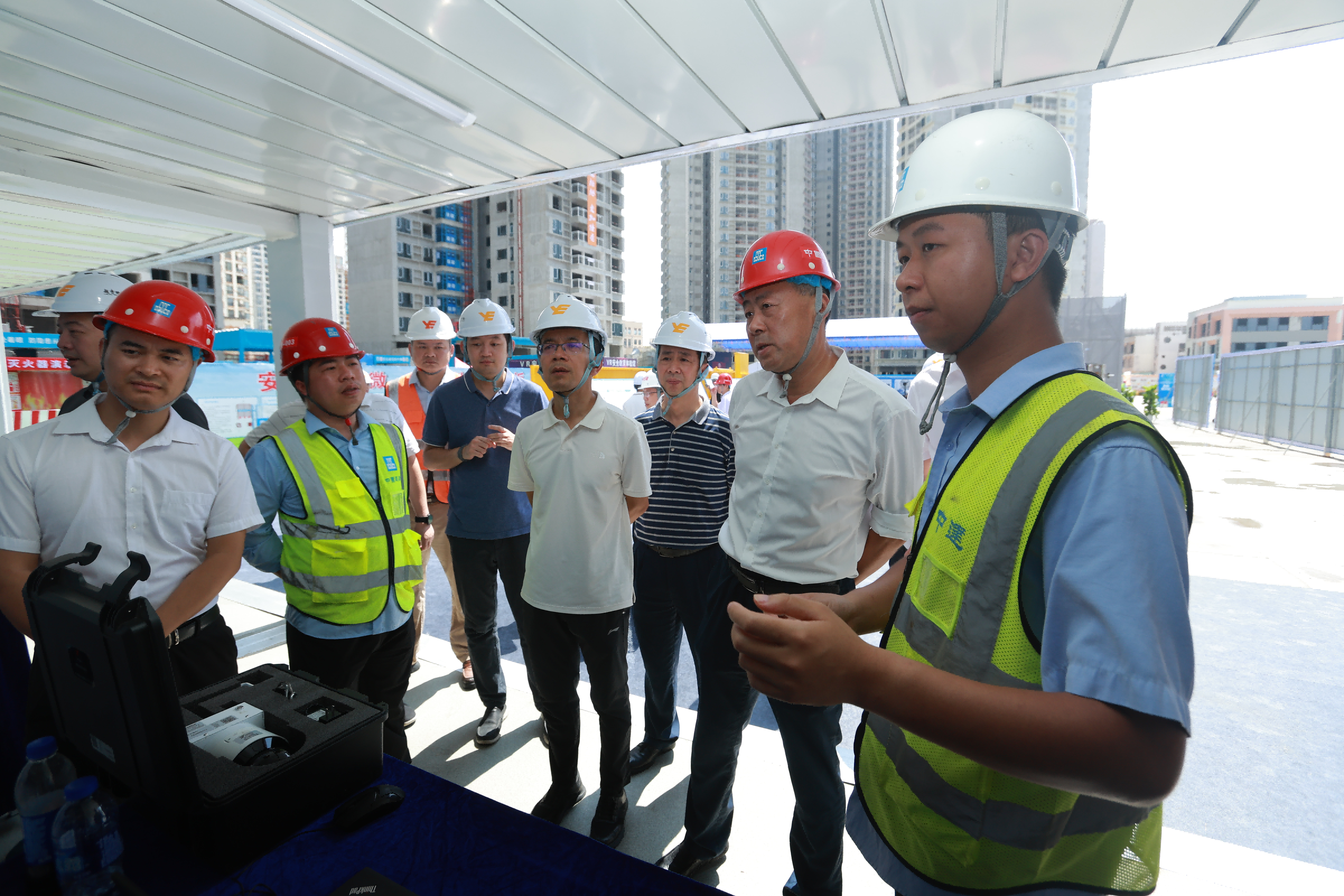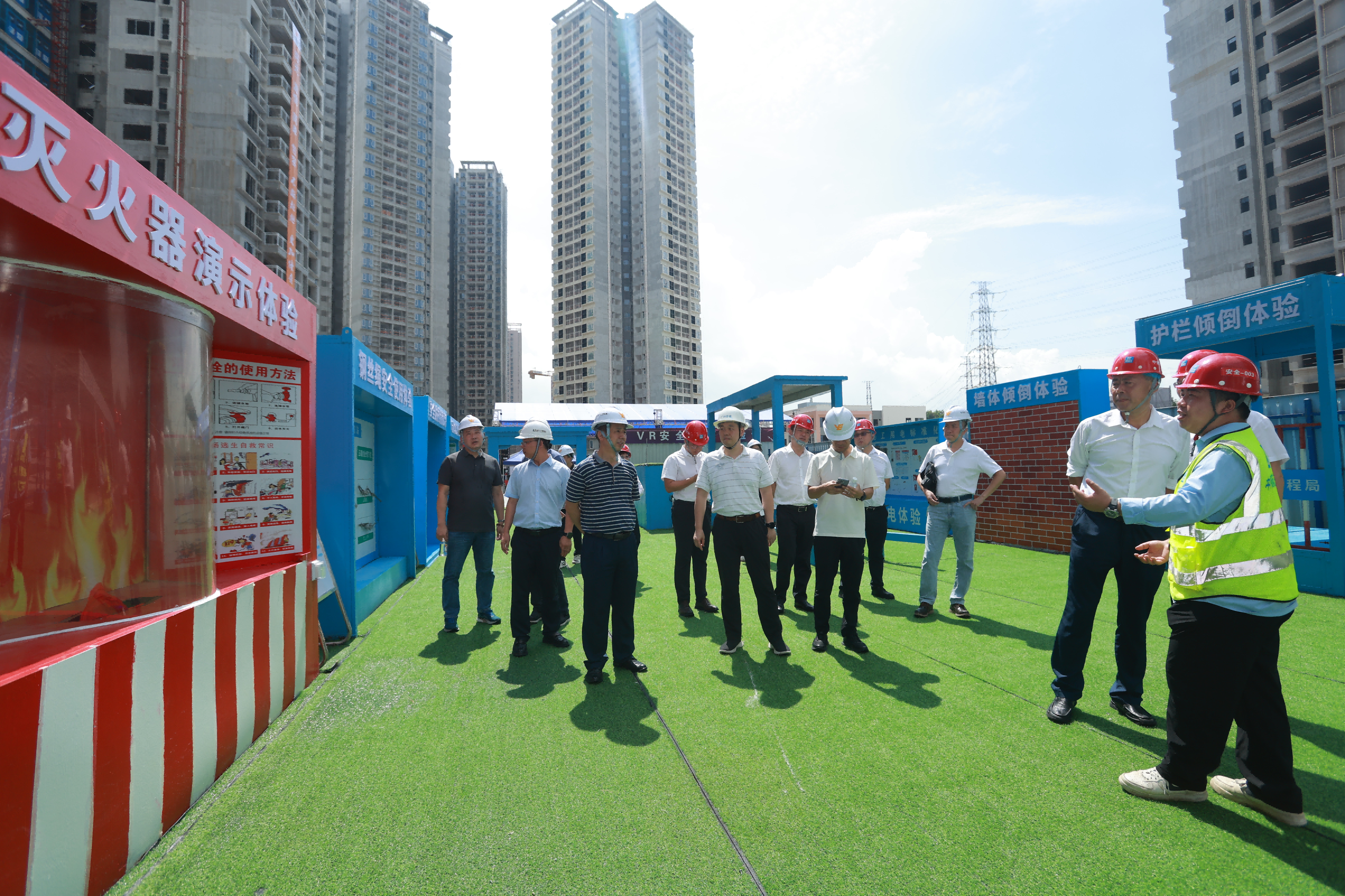 與會領導和各單位觀摩人員在啟動會后對觀摩現場進行了分批觀摩。本次活動圍繞“人人講安全 個個會應急——暢通生命通道”活動主題,在現場設置AI智能識別展示、防高墜展示、VR體驗、安全體驗館、鋁膜樣板展示區、全鋼附著式腳手架展示區、數字建造平臺、作戰指揮室、防高墜樣板展示區、塔吊智能監控等20個展示區,全方位展示項目在智能建造升級、聚焦科技賦能、精細管理提升等方面的安全管理效能,為項目安全生產和企業高品質發展保駕護航。與會領導和觀摩嘉賓對項目全方位的安全管理水平紛紛表示贊賞,觀摩活動取得圓滿成功。