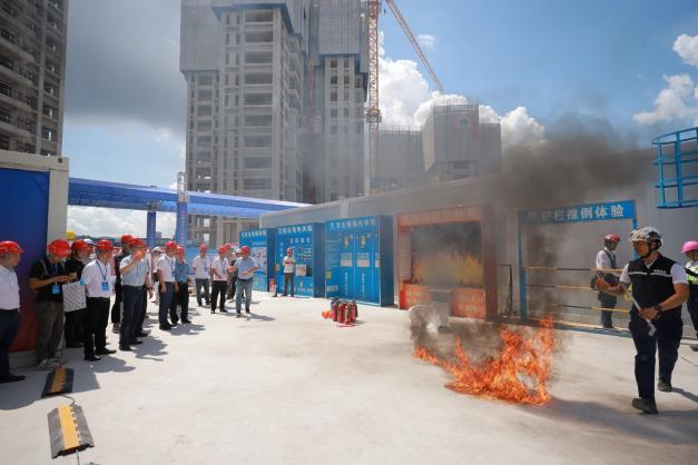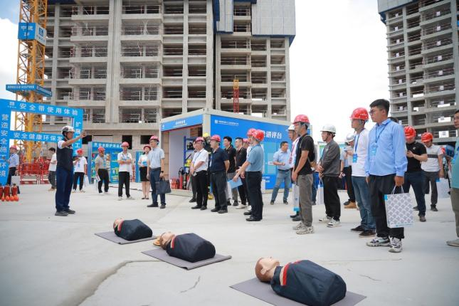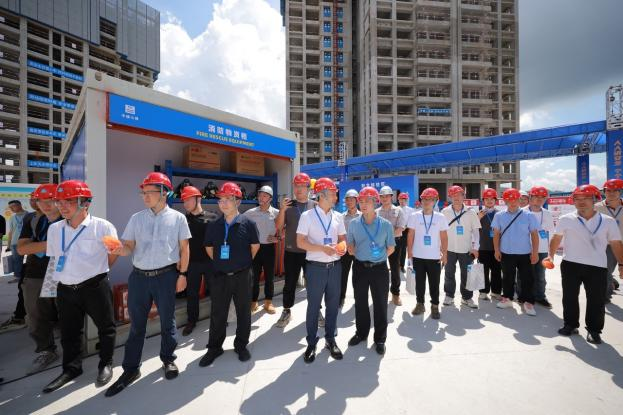大會啟動儀式后,觀摩人員分批對現(xiàn)場進行了觀摩。觀摩現(xiàn)場精心設置互動VR交互體驗、BIM智慧建造、數(shù)字建造平臺、集成式消防應急箱等20余個展示區(qū),通過公司講解員聲情并茂的講解和演練員的實景演練,對項目安全、技術、質量等全過程管理標準、管理經驗及成果應用等進行集中展示和推廣,獲得現(xiàn)場領導嘉賓的一致好評。