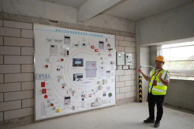 觀摩現(xiàn)場還設置了“樣板先行·質量有管控”的展示區(qū),以全生命周期BIM技術應用模式為基礎,通過各階段的模型數(shù)據(jù)傳遞和集成,實現(xiàn)各階段、各參建方高效協(xié)同。項目建設內部結構采用裝配式施工,實行實體結構管控、高精氣砌體+ALC墻板、地下室管廊綜合深化等技術手段,秉承綠色施工理念運用實時環(huán)境監(jiān)測系統(tǒng)、現(xiàn)場揚塵控制技術確保施工現(xiàn)場綠色環(huán)保,全力打造具有綠色技術集成、標準化集成、裝配化施工等特點的工藝。