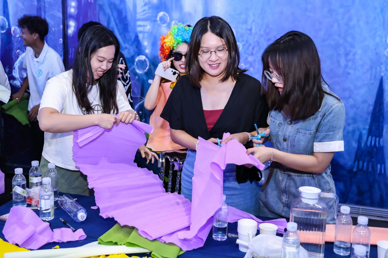 活動現場氣氛熱烈,互動游戲形式多樣,既有緊張刺激、扣人心弦的“桃花朵朵開”,又有充滿奇思妙想的“尋寶大作戰”,更有讓人“腦洞大開”的“DIY服裝T臺走秀”……精彩紛呈的小游戲吸引了所有人員的積極參與。通過松弛有度、緊張有序的游戲帶動,男女青年在游戲過程中逐漸放下了初見時的拘謹,主動展開交流和互動,增加對彼此的了解,現場歡聲笑語不斷。