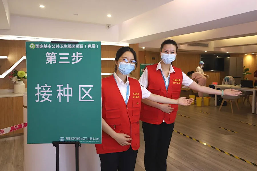 經過一天一夜的緊張準備,18日當日,“愛心筑夢團”自黨委工作部、辦公室、工會工作部、合約法務部、安全監督管理部等部門抽調十余名骨干,攜帶便攜座椅、飲用水等物資奔赴疫苗接種現場,迅速與街道辦黨組織對接。