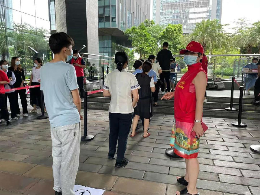 自廣州新型冠狀病毒肺炎疫情發生以來,華南建設主動與當地有關部門、社區取得聯系,以較高的政治站位、勇于擔當作為的姿態,以晝夜奮戰在一線的抗疫戰士為榜樣,積極投身疫情防控志愿服務工作。6月8日,廣州通報感染者涉及的144個重點場所,萬勝圍廣場是其中之一。為阻斷疫情傳播鏈條,萬勝園區開展3天2檢的全民核酸檢測,任務異常繁重。公司黨委一邊主動與園區物業取得聯系,一邊動員員工參與檢測服務??吹饺豪镎心贾驹刚叩男畔⒑?,總部員工紛紛主動請纓,報名參加“萬勝園區抗疫突擊隊”,于6月10日上午,協助核酸檢測工作人員開展了秩序維護、引導咨詢、便民利民等志愿服務。