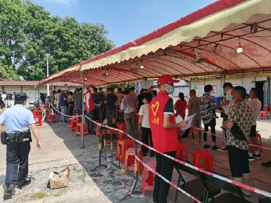 6月6日,廣州增城御溪谷三期項目黨支部按照街道通知,迅速部署行動、組織項目管理人員及所有勞務工人去就近轄區集中檢測點做全員核酸檢測。為解決此次全員檢測時間緊、任務重、需檢測人員眾多,且部分年齡偏大的村民不會使用智能手機,派出所及村委會維持秩序工作人員嚴重不足。項目黨支部主動與駐地中新鎮派出所黨支部和團結村黨支部對接配合,急召集項目黨員、團員共11人組成志愿先鋒服務隊趕赴項目駐地的中新鎮團結村村部廣場維持秩序,緩解現場醫護人員工作壓力。在醫護人員和志愿服務隊的共同努力下,轄區人員的集中檢測工作提前順利完成,為廣州市增城區的疫情防控貢獻紅色力量。御溪谷三期項目黨支部受到了中新鎮派出所、團結村村委、黨支部的大力贊揚!