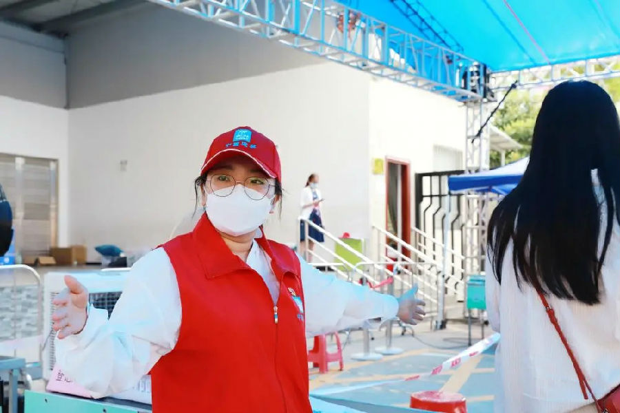他們從烈日當空到暮色四合,始終堅守一線,半天都顧不上喝一口水、上一次廁所,手不停地為社區居民進行身份信息錄入、秩序維護、人員引導和健康碼指引,極大地提高了核酸檢測速度。