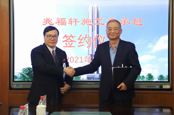 在與會人員的共同見證下,鄧化亭董事長與鄭振中總裁代表雙方企業簽訂了兆福軒施工總承包合同。
