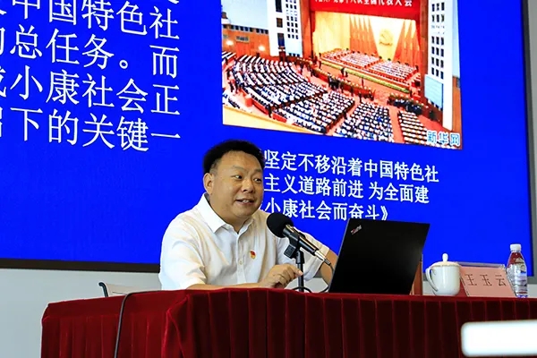 授課中,王玉云教授緊緊圍繞習(xí)近平總書記“七一”重要講話精神,從講話的重大意義出發(fā),系統(tǒng)總結(jié)了全面建成小康社會(huì)的重大歷史性成就,全面回顧了黨的百年奮斗歷程及其偉大成就,重點(diǎn)闡釋了偉大建黨精神的深刻內(nèi)涵和時(shí)代價(jià)值,深刻解讀了以史為鑒、開創(chuàng)未來的“九個(gè)必須”根本要求,并重溫了習(xí)近平總書記代表黨中央發(fā)出的偉大號(hào)召。