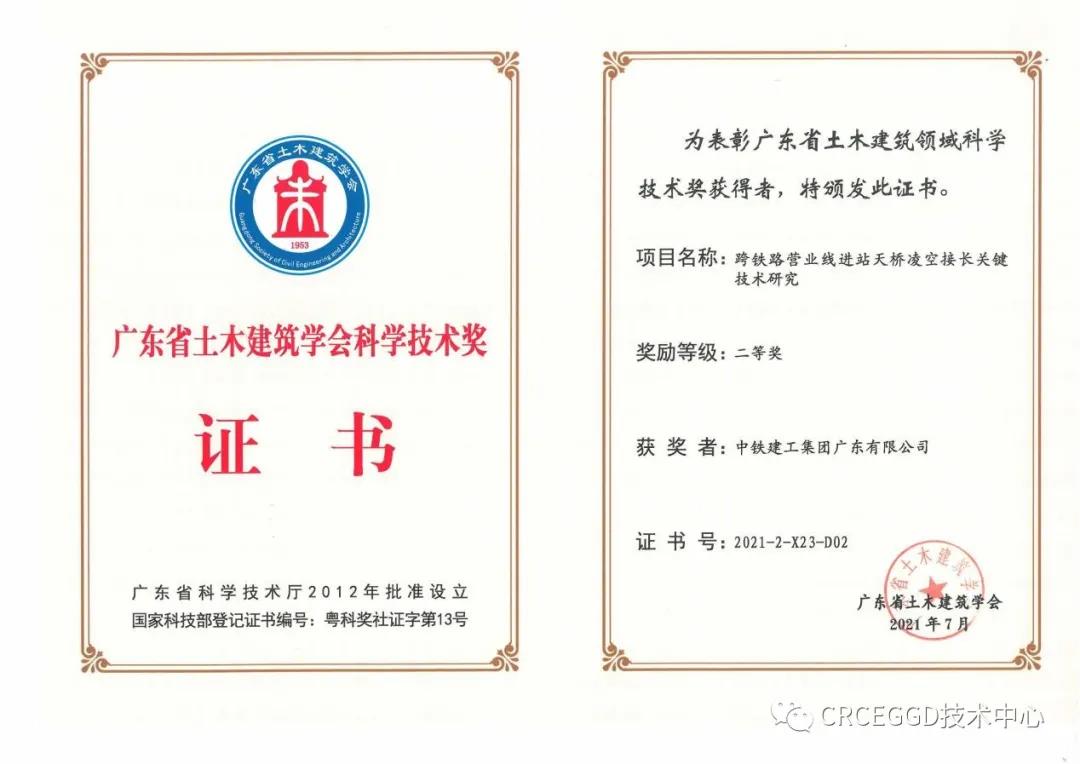 2021年8月,第九屆廣東省土木建筑學會科學技術獎評審及表彰大會順利召開。公司首次榮獲省級學會科學技術獎,取得了省級學會科學技術獎從無到有的突破!同月,獲得廣東省土木工程詹天佑故鄉杯獎!