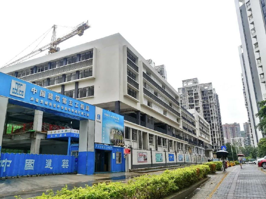 平安里學校項目位于深圳市龍崗區龍城街道平安里二路與夏長路交匯處西北側,周圍交通道路狹窄,四周住著上千戶居民。項目甫一進場就面臨兩大難題:一是施工噪音對小區住戶造成一定影響,二是新開的項目口與原學校大門在同一條路上,學生上學與施工材料、機械進出場相沖等問題。
