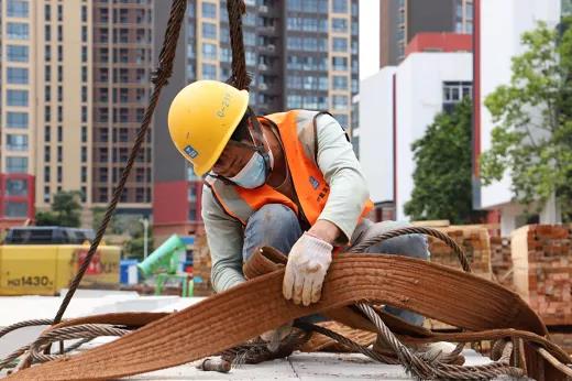 在項目建設現場,除反光背心、安全帽、安全帶之外,口罩成了現場人員的安全第四“寶”,項目部鋪開了一條防疫與生產并行不悖的科學作業線,合力搶抓“7·30”教學樓交付節點。