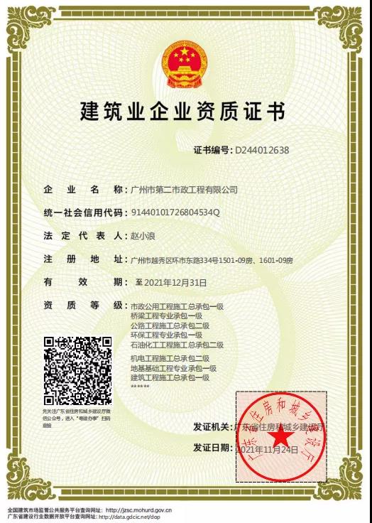 11月下旬,經廣東省住房和建設廳審核批準及公告,我司順利取得建筑工程施工總承包壹級資質,標志著我司資質建設又上了一個新臺階,為公司進一步開拓建設施工市場,提升新的經濟增長點,實現(xiàn)企業(yè)可持續(xù)發(fā)展奠定了堅實的基礎,是公司發(fā)展史上的又一里程碑。
