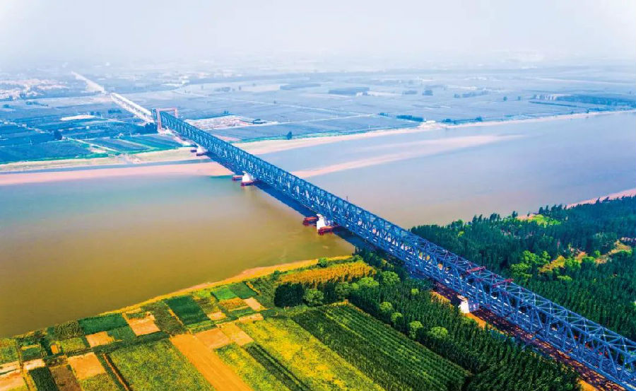 中鐵十四局承建的新建黃驊南至大家洼鐵路黃河特大橋于2020年12月26日全線開通運營。該橋全長1183米,創造了鋼桁梁無支墩頂推最大懸臂160米的紀錄。建設者們先后攻克了液化地質條件下超長大直徑樁基施工、大體積墩身裂縫控制技術、多點同步連續頂推控制技術、強風地區長懸臂頂推抗傾覆技術、多跨連續鋼桁梁同步落梁技術等多個技術難關,大膽創新了一系列新工藝、新技術,編撰論文30余篇,在國內核心期刊發表11篇,獲得專利8項。建設者研究的《大跨度平行弦連續鋼桁梁全懸臂多點同步頂推施工關鍵技術》科技成果,被鑒定為國際領先水平,授權發明專利3項。