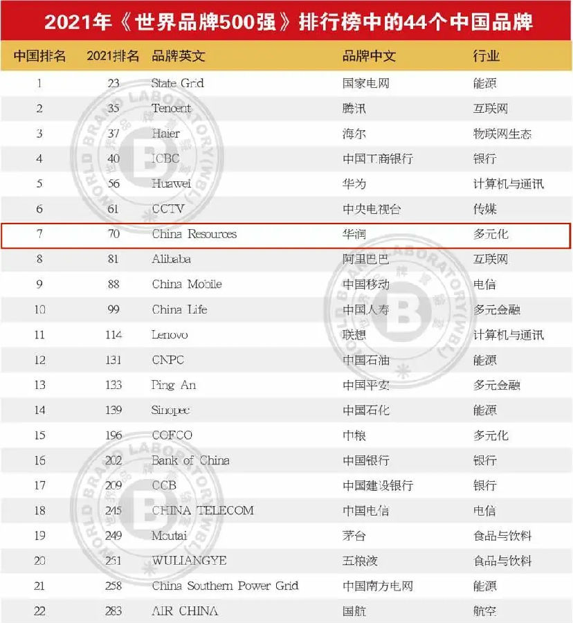 再一次入選“世界品牌500強”榜單,彰顯了“華潤”商標品牌的綜合實力和國際影響力。