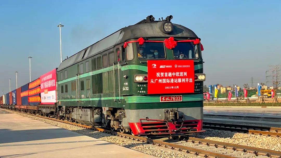 ▲首趟中歐班列從廣州國際港站順利開出