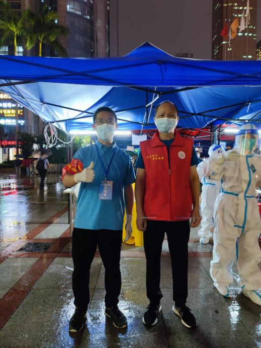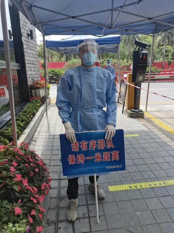 曾獻(xiàn)明下沉社區(qū)主要負(fù)責(zé)協(xié)助社區(qū)人員數(shù)據(jù)排查、上門派發(fā)居家健康告知書、開展防疫措施宣傳、進(jìn)行核酸檢測(cè)人員疏導(dǎo)等工作。近日廣州氣溫最高超過了30℃,他身著防護(hù)服,從一樓爬到九樓挨家挨戶進(jìn)行人員排查,汗水浸透了衣背,又熱又渴的他毫無(wú)怨言,下沉期間協(xié)助疏導(dǎo)核酸檢測(cè)人員約上萬(wàn)人次,他說:“哪里最艱苦,請(qǐng)派我到哪里去。”