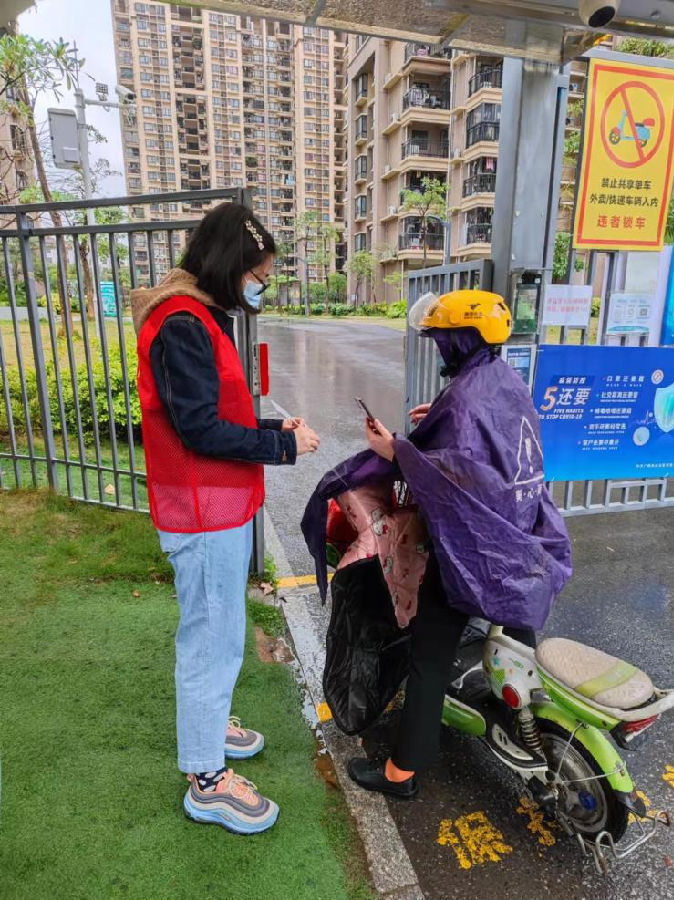 李綿主動(dòng)參與“疫”線值守,當(dāng)好居民“安全員”。在收到公司黨委組織發(fā)布的在職黨員干部到社區(qū)參與疫情防控的通知后,就第一時(shí)間報(bào)名,積極參與小區(qū)聯(lián)防聯(lián)控工作。志愿服務(wù)期間經(jīng)常下起蒙蒙細(xì)雨,她在雨中依然認(rèn)真工作,穿戴著紅馬甲,堅(jiān)守在社區(qū)大門,嚴(yán)格落實(shí)防疫措施,仔細(xì)查驗(yàn)出入小區(qū)人員的健康碼,測(cè)量體溫,進(jìn)出的許多居民在門崗測(cè)溫時(shí)都送上了一句“你們辛苦了!”