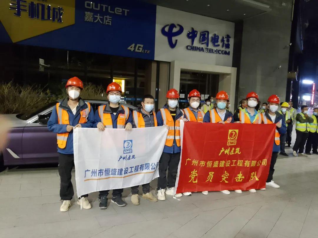 11月6日晚上10點,恒盛公司接集團公司通知,緊急支援白云區圍蔽任務。一呼百應,八方馳援,不到一個小時,300余人的隊伍迅速集結完畢,即刻趕往嘉禾望崗馳援防疫圍蔽建設,經過整夜作戰,于11月7日早上8點完成了近7.4公里的水馬圍蔽、注水及維護工作。