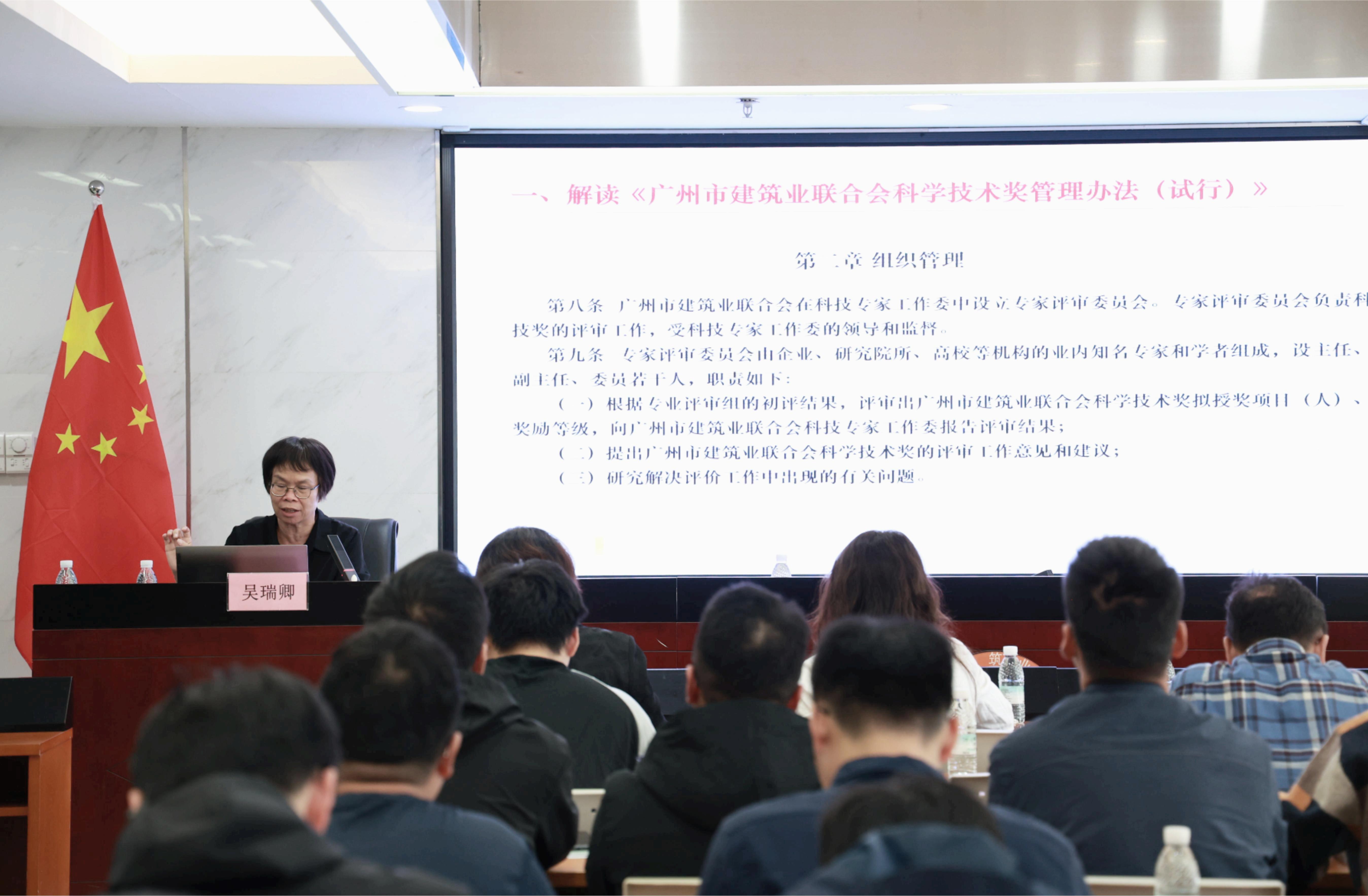 本次培訓特邀行業(yè)資深專家吳瑞卿擔任主講嘉賓。吳老師以政策解讀為切入點,系統(tǒng)梳理《廣州市建筑業(yè)聯(lián)合會科學技術獎管理辦法(試行)》的核心條款,隨后圍繞申報全流程節(jié)點、材料撰寫規(guī)范要點、典型誤區(qū)規(guī)避策略等內容展開深度講解,通過案例分析與實操指導相結合的方式,為學員提供了兼具專業(yè)性與實用性的申報解決方案。