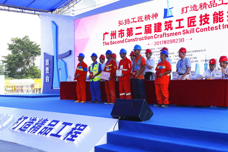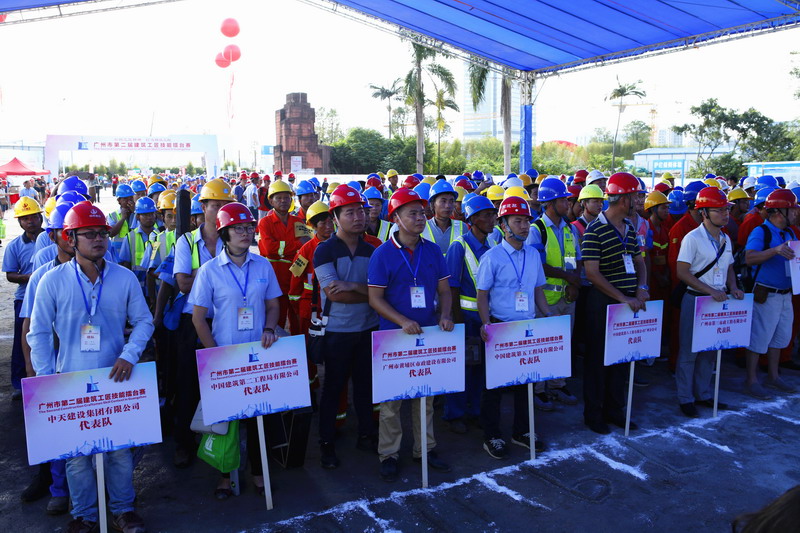 2017年9月23日,由廣州市住房和城鄉建設委員會和廣州市總工會聯合主辦,廣州市建設宣傳教育和建筑業勞保金管理中心具體承辦,廣州市海珠區人民政府、廣州市海珠區住房和建設水務局、廣州市建筑業聯合會、廣州市建設監理行業協會、廣州市建筑勞務行業協會、中國建筑第五工程局有限公司、中建三局第三建設工程有限責任公司、廣州市建筑集團有限公司、廣州市公用事業高級技工學校、廣州市市政工程維修處、廣州市市政集團有限公司職業學校、廣州市建設職業培訓學校、廣州城建職業學院協辦的第二屆建筑工匠技能擂臺賽在海珠區琶州互聯網創新集聚區工地順利開幕。擂臺賽由市住房城鄉建設委副主任李朝暉主持,李朝暉副主任代表擂臺賽組委會簡要介紹了本次比賽的籌備情況。