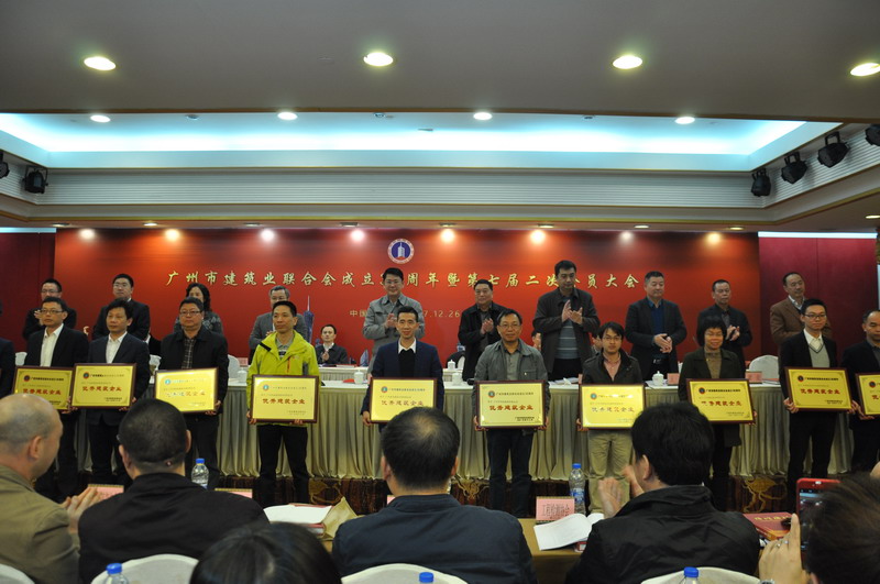 會(huì)議表彰階段,楊家峰會(huì)長(zhǎng)代表理事會(huì)宣讀了《廣州市建筑業(yè)聯(lián)合會(huì)關(guān)于對(duì)指導(dǎo)、支持、促進(jìn)聯(lián)合會(huì)工作業(yè)內(nèi)老同志的感謝信》,感謝30年來(lái)為我會(huì)的建設(shè)和發(fā)展付出大量心血的歷屆老領(lǐng)導(dǎo)、老同志。副會(huì)長(zhǎng)廖曉明、李中慶、梁亮、吳險(xiǎn)峰、鄭龍輝、尹穗、孫超美分別宣讀了我會(huì)關(guān)于表彰優(yōu)秀企業(yè)、優(yōu)秀企業(yè)家、優(yōu)秀項(xiàng)目經(jīng)理、資深專家、優(yōu)秀專家、質(zhì)量創(chuàng)優(yōu)先進(jìn)單位、安全文明施工創(chuàng)建先進(jìn)單位、質(zhì)量管理小組活動(dòng)先進(jìn)單位和個(gè)人、新技術(shù)應(yīng)用先進(jìn)單位、會(huì)員單位優(yōu)秀工作者等決定的文件,并向獲獎(jiǎng)單位和個(gè)人頒獎(jiǎng)。會(huì)議向新當(dāng)選的常務(wù)理事和理事頒牌。