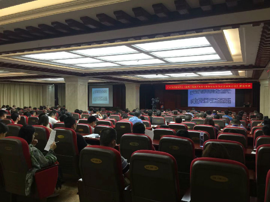 為規范我市建筑工程施工承發包活動,維護建筑市場秩序,廣州市住房和城鄉建設局擬于近期開展查處房屋建筑工程發包與承包違法行為專項行動。為保證專項行動順利進行,9月10日上午,我會協助市住建局在廣州公共資源交易中心二樓拍賣大廳舉辦第二場《建筑工程施工發包與承包違法行為認定查處辦法》解讀培訓班,對有關單位負責人進行培訓。市標辦副主任李芮兵、我會張江華副秘書長出席本次培訓班。本次培訓由市住建局建管處鄭文棟科長主持。