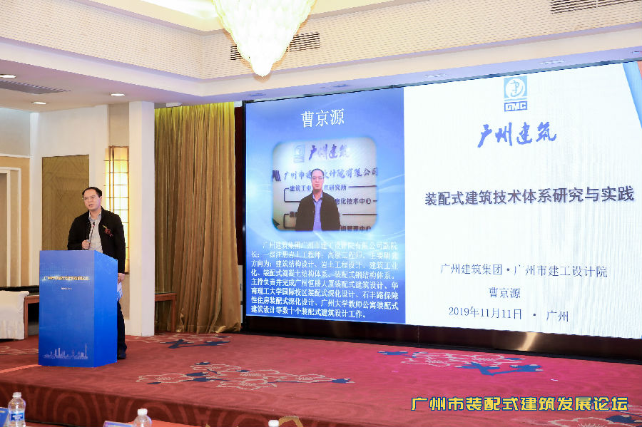 廣州建筑集團廣州市建工設計院有限公司曹京源副院長作了題為裝配式建筑技術體系研究與實踐的精彩演講。