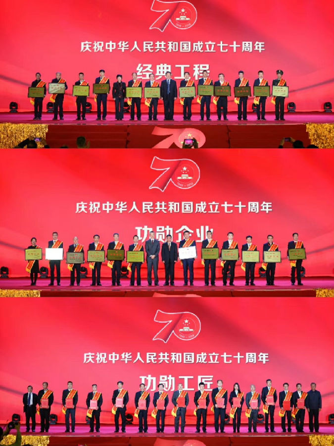 大會為新中國成立70周年來為社會主義建設做出巨大貢獻的百大經典工程、百家功勛企業與百位功勛工匠進行了授牌獎勵與宣傳展示。