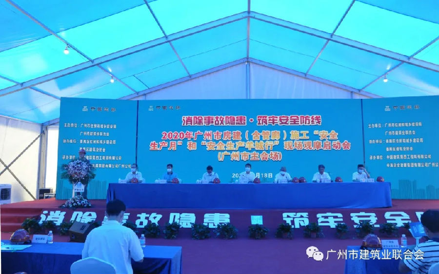 6月18日,由廣州市住建局、廣州市建筑業聯合會主辦,番禺區住建局、番禺區建筑業協會協辦,中國建筑第四工程局有限公司、中海企業發展集團有限公司廣州公司承辦的廣州市房建(含管廊)施工“安全生產月”和“安全生產羊城行”現場觀摩會在中建四局中海左岸瀾庭項目舉行。廣州市住房和城鄉建設局黨組成員、副局長王保森,廣州市建筑業聯合會執行會長崔浩江,番禺區副區長朱瑞武,番禺區住房和城鄉建設局黨組書記、局長張啟泉,中建四局副總經理王國祥,中建四局一公司副總經理張明,中海企業發展集團有限公司廣州公司副總經理張言濤等領導,來自廣州市11個區住建局、安全監督機構負責人及60余家企業和在建項目相關負責人共同觀摩。因疫情防控要求,會議總人數控制在200人。會議由我會秘書長常桂枝主持。