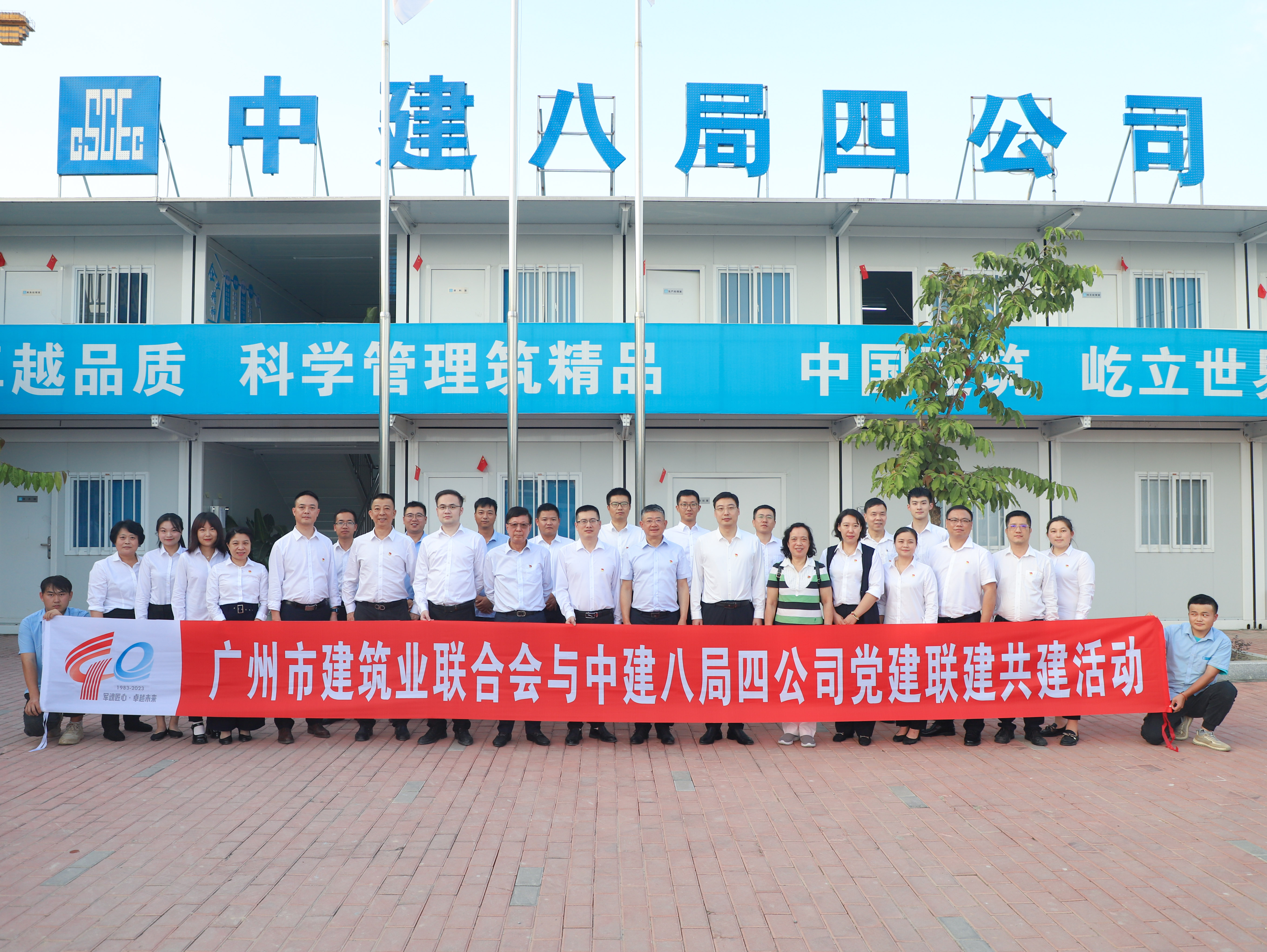 為深入學習貫徹習近平新時代中國特色社會主義思想和黨的二十大精神,推動黨建工作與工程建設同謀劃、同部署、同推進、同考核,實現體制對接、機制對接、制度對接和工作對接,賦能領航企業打造精品工程、樣板工程、平安工程、廉潔工程。10月25日下午,我會黨支部與中建八局四公司南方公司黨支部共同開展“學習二十大 奮進大灣區”主題黨建共建活動。廣州市建筑業聯合會會長楊青,市國資委原正局級巡視員、廣州市建筑業聯合會黨建指導員李卓韻,黨支部書記、執行會長崔浩江;中建八局四公司南方公司黨總支書記、總經理曹雨,總工程師韓光平出席本次活動。
