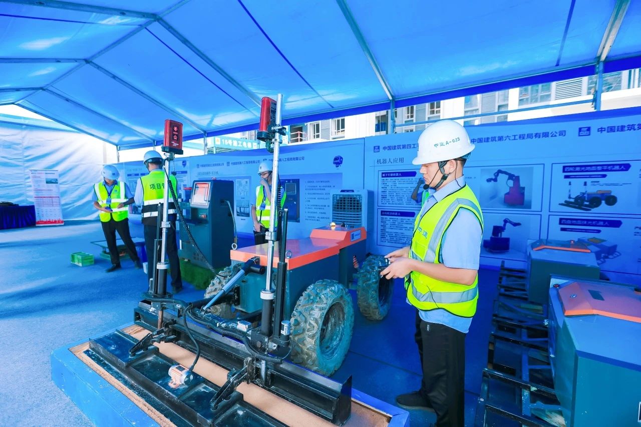 “數智工地”讓施工有了“眼耳鼻”,,項目引進一群機器人“工友”,測量、膩子打磨、抹灰、噴涂等建筑機器人齊上崗,智能化建筑機器人的多方面引入,極大提高了施工質量和效率,人機協同作業模式,以高質量、高效率、智能化,助推建筑智能技術交流和應用推廣