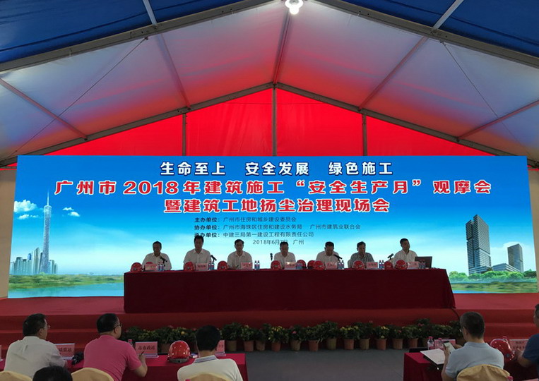此次會議以“生命至上、安全發展、綠色施工”為主題,突出揚塵管理。結合我市推進全面落實企業安全生產主體責任專項行動年要求,對“安全生產月”進行動員,會議播放了廣州325事故警示教育片,目的是提醒到會單位要堅決遏制較大及以上級別的安全事故。會上,中建三局一公司介紹了工地管理經驗,海珠區介紹了該區安全生產及揚塵防治情況。
