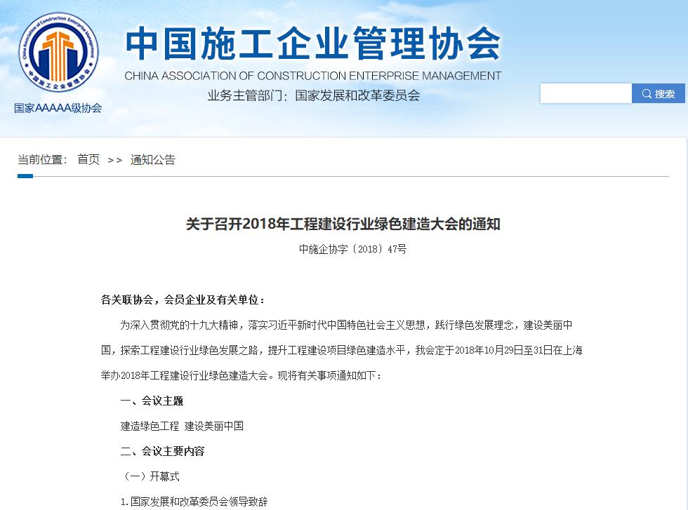 【轉發】中施企協關于召開2018年工程建設行業綠色建造大會的通知