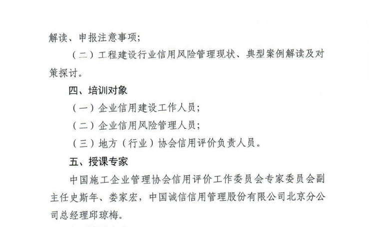 各有關會員單位 : 為幫助施工企業提高信用評價水平和信用管理能力,推動工 程建設行業信用建設持續健康發展,中施企協舉辦工程建設行業 信用建設網絡公益培訓 ,請有關會員單位積極參與。(詳情請查閱附件)