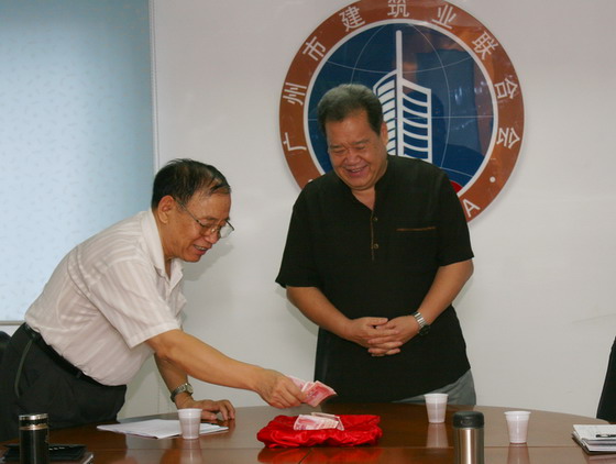 廣州市建筑業(yè)聯(lián)合會會長邵云平、秘書長張?zhí)飵ь^為舟曲特大泥石流遇難同胞捐款