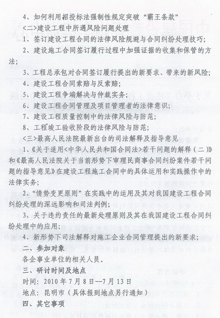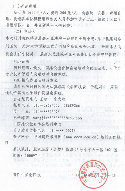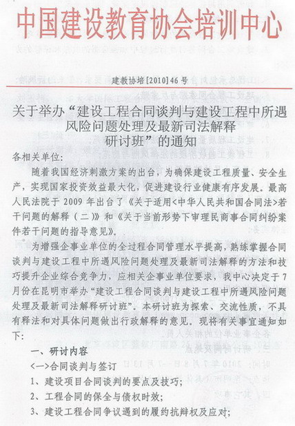 轉發中國建設教育協會培訓中心《關于舉辦“建設工程合同談判與建設工程中所遇風險問題處理及最新詞法解釋研討班”的通知》的通知