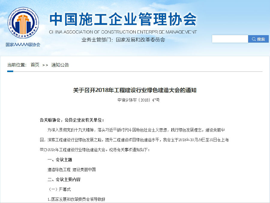 【轉(zhuǎn)發(fā)】中施企協(xié)關(guān)于召開2018年工程建設(shè)行業(yè)綠色建造大會(huì)的通知