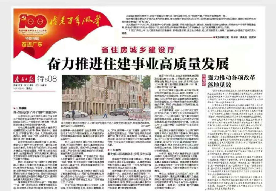 尤其是黨的十八大以來,緊緊圍繞中心抓黨建、強根基,抓好黨建促業務、提效能,將黨建與完善住房制度、保持房地產市場平穩健康發展、實施城市更新行動和鄉村建設行動、推動建筑業轉型升級等重點工作深度融合,為廣東高質量發展作出貢獻。