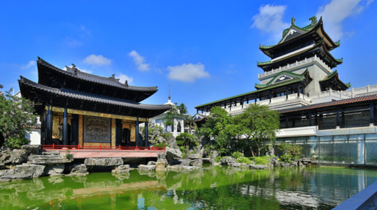 以傳承粵劇這門非物質文化遺產為設計理念,采用傳統民間工藝和當代藝術創作融為一體的設計手法,造型呈現具有地方特色高標準工藝作品與建筑藝術有機結合的建筑細節,其中以三雕兩塑(木雕、磚雕、石雕、灰塑、陶塑)和園林假山營造最具亮點,實現粵劇藝術和嶺南文化的完美結合。