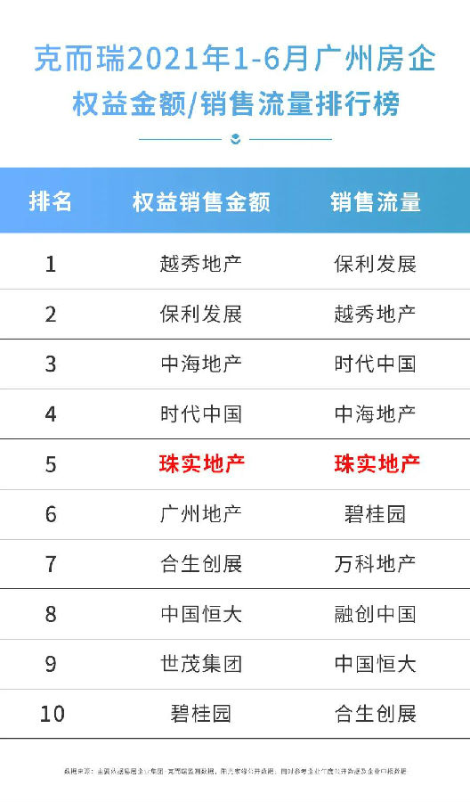 近日,易居企業(yè)集團(tuán)旗下克而瑞研究發(fā)布了1-6月廣州房企銷售金額榜單,同時由中國房地產(chǎn)指數(shù)系統(tǒng)、中指研究院主辦“2021半年度房地產(chǎn)市場趨勢報告會”也在京召開。珠實地產(chǎn)憑亮眼業(yè)績、品牌實力、優(yōu)質(zhì)服務(wù)等,榮膺克而瑞2021年1-6月廣州房企權(quán)益銷售及銷售流量排行榜前五及中指院“2021上半年廣州市房地產(chǎn)10強(qiáng)企業(yè)”前四,實力有為、再上新階。