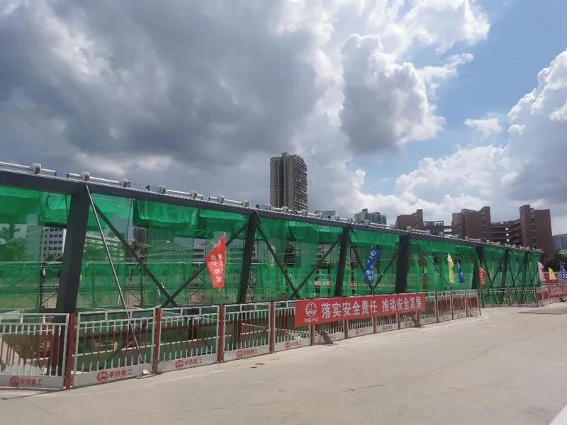 赤沙指揮中心項目施工方中鐵建工技術(shù)人員介紹,創(chuàng)新的綠色巨幕防塵系統(tǒng)和矩陣式防塵噴淋系統(tǒng)都是亮點。從高空俯瞰,整個工地基坑被綠色巨幕包裹,綠色防塵巨幕采用單元式布置,約6米寬作為一個單元,在基坑上方自動開合,在施工期間使得基坑作業(yè)現(xiàn)場隨時成為一個封閉式的作業(yè)空間,有效防止揚塵對外部環(huán)境造成污染。矩陣式揚塵噴淋系統(tǒng)能夠?qū)崿F(xiàn)整個基坑噴淋覆蓋,加上防塵霧炮機開啟后,整個建筑工地立即水霧彌漫,高效實現(xiàn)土方開挖施工作業(yè)過程的降塵。