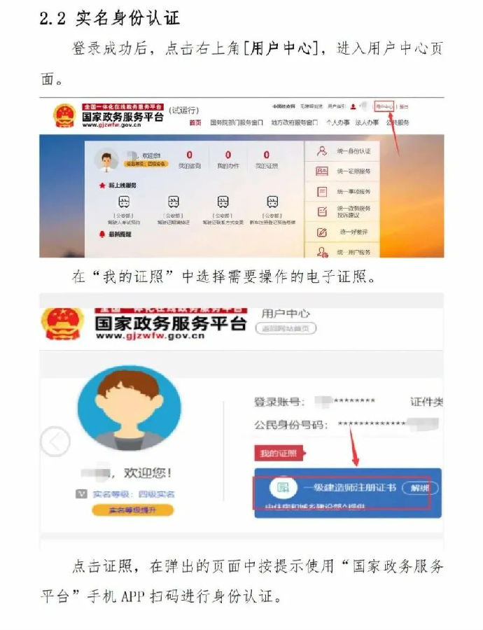 1.自2021年10月15日起,在全國范圍內實行一級建造師電子證書(具體示例及說明見附件1),電子證書式樣按照《全國一體化在線政務服務平臺電子證照一級建造師注冊證書》標準執行(具體式樣見附件2)。自2022年1月1日起,一級建造師統一使用電子證書,紙質注冊證書作廢。