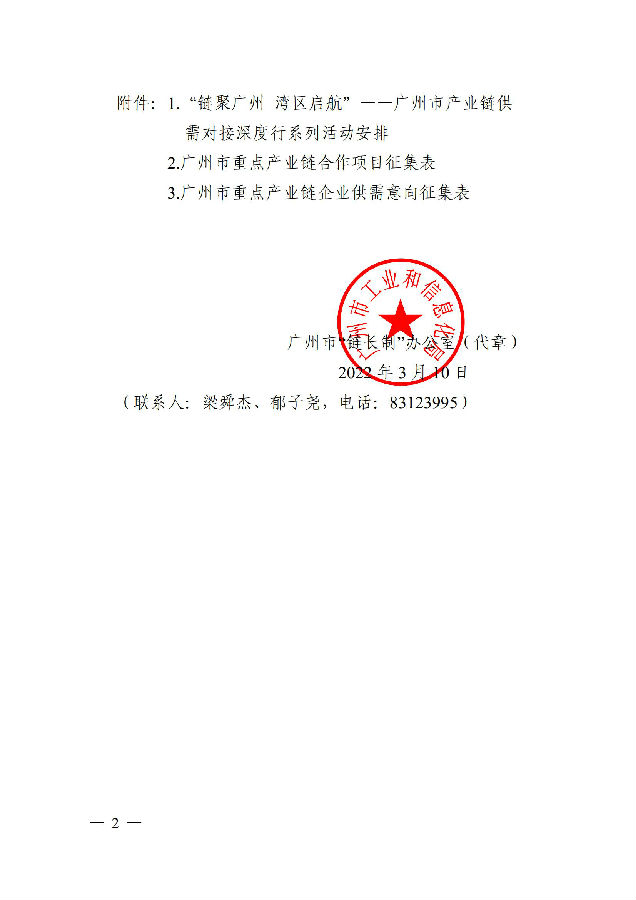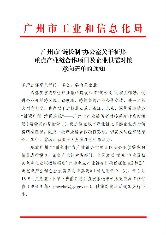 廣州市“鏈長制”辦公室關于征集重點產業鏈合作項目及企業供需對接意向清單的函.pdf