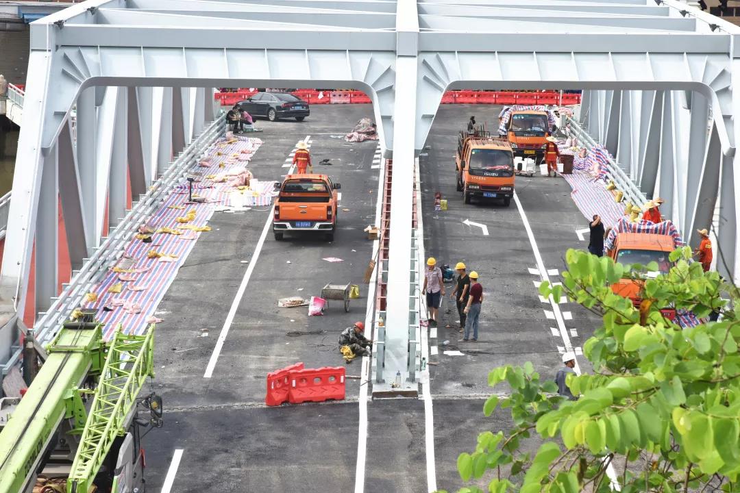 提升主跨的鋼橋面鋪裝,在番禺區首次采用超薄高韌GT-10瀝青混合料結構層,其厚度僅5厘米。
